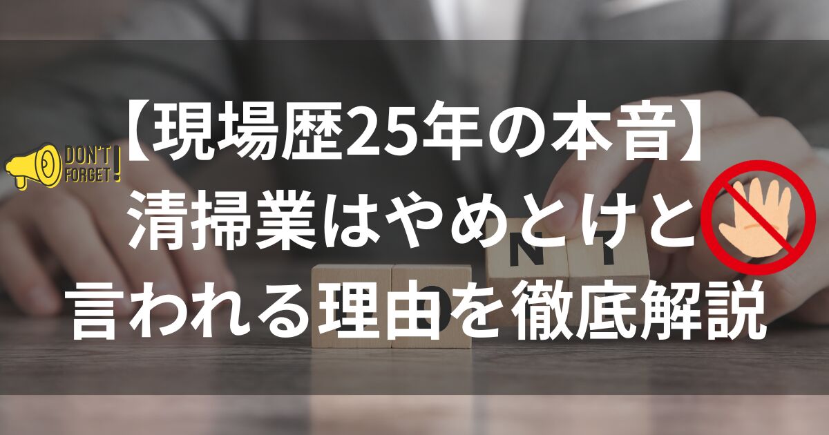 清掃の仕事に興味があったり、今まさに現場で働いていたりすると、一度は清掃業はやめとけという言葉を目にしたことがあると思います。