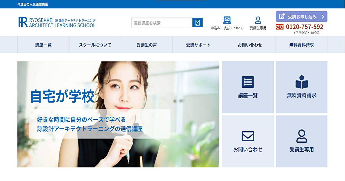 通信講座の専門校諒設計アーキテクトラーニングでは、住まいに関する知識とスキルを在宅で学べる講座が充実しています。