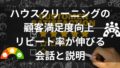 最後に集金をする際にお客様に『今回の作業でお気づきの点やエアコンのトラブル(水漏れや臭い)がありましたら遠慮なくご連絡ください』と伝えて帰ると安心されます。