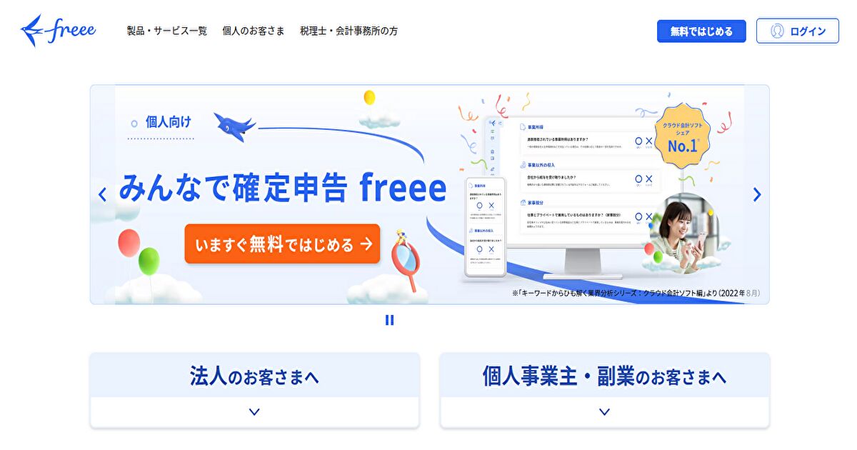 freeeは「質問に答えていく感じで進められる」設計が強みで、初心者でも入りやすい印象です。