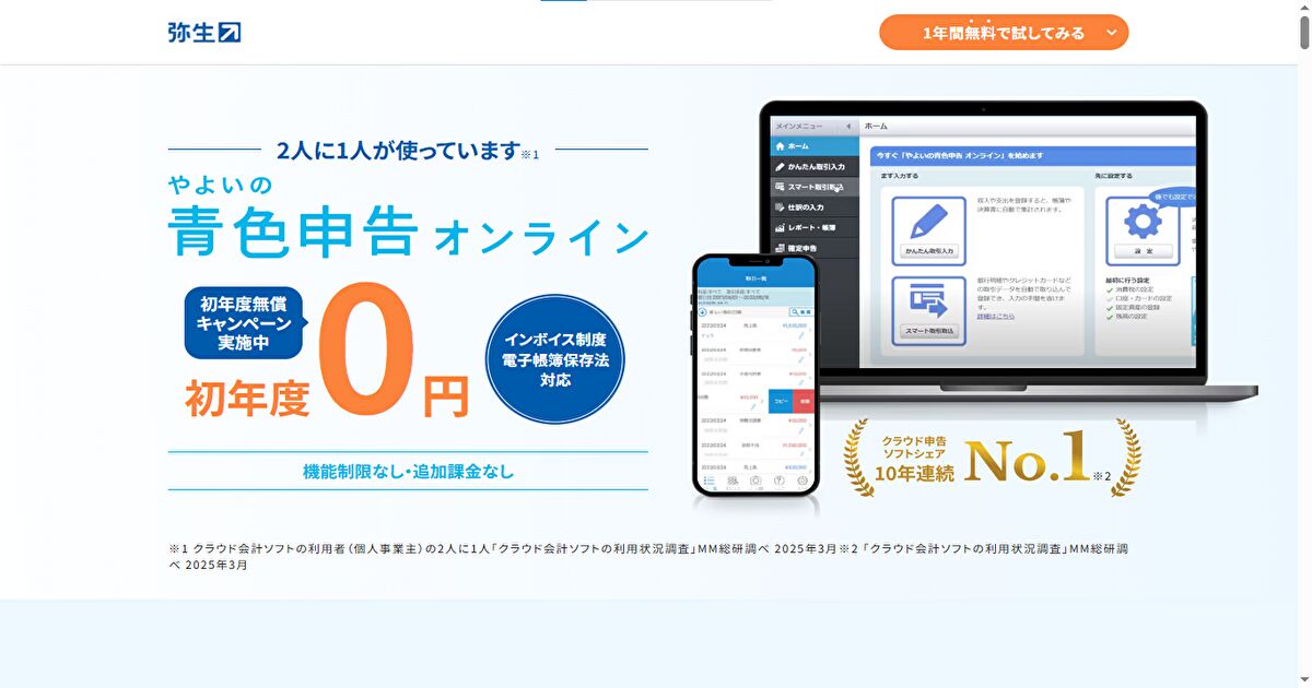 画像出典:やよいの青色申告オンライン ![]()