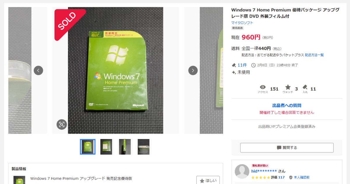 かなり古いOSですが、未使用で外装フィルム付きだったこともあり、しっかり落札されました。