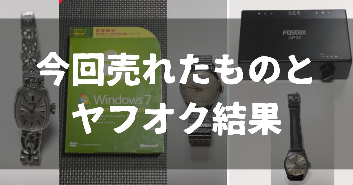 今回売れたのは、SEIKOのレディース時計、Windows 7 Home Premiumの優待パッケージ、SEIKO SUPER 15石の手巻き時計、OMEGA Geneveの手巻き時計、FOSTEXのヘッドホンアンプです。