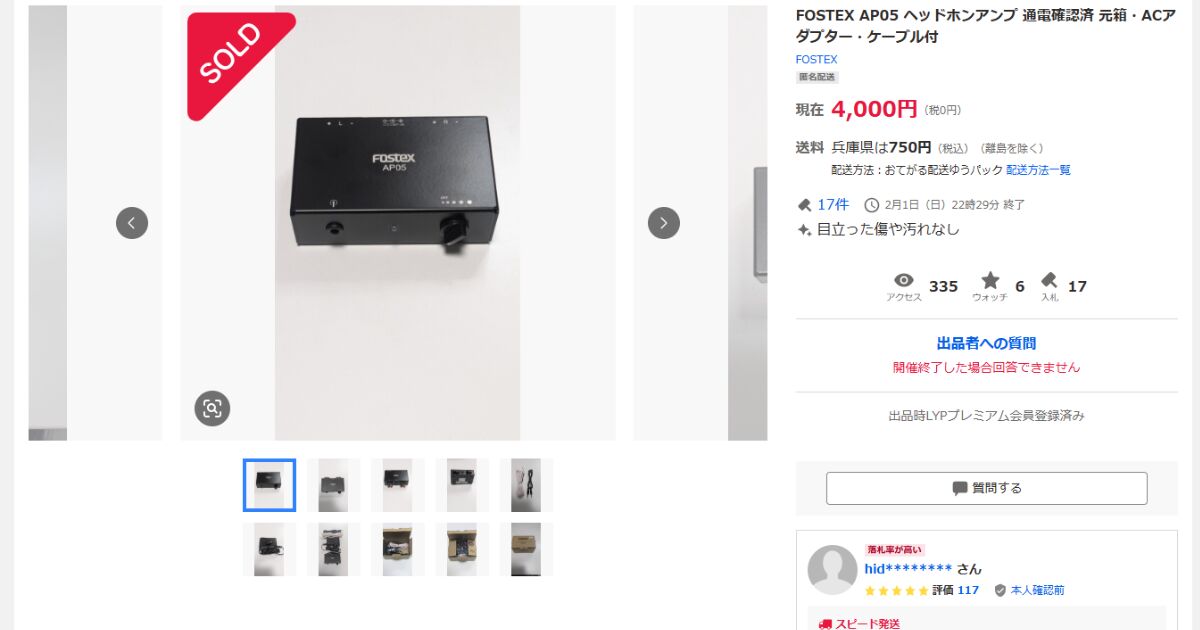 通電確認済みで、元箱や付属品もそろっていたこともあり、4,000円で落札されました。