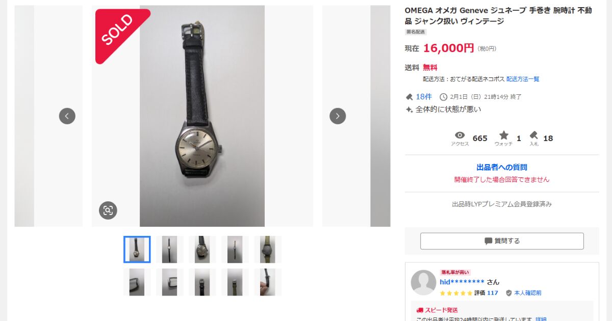 • 最高落札額を更新したもの:OMEGA Geneve 手巻き腕時計(純利益14,592円)