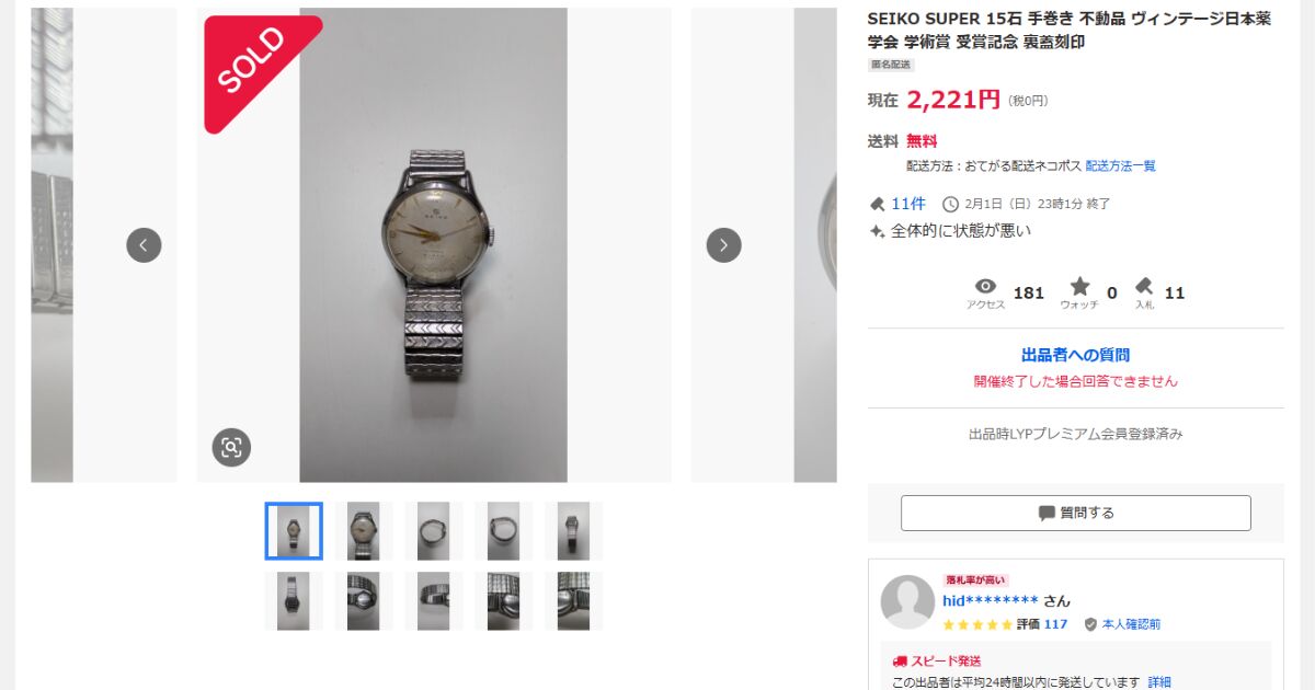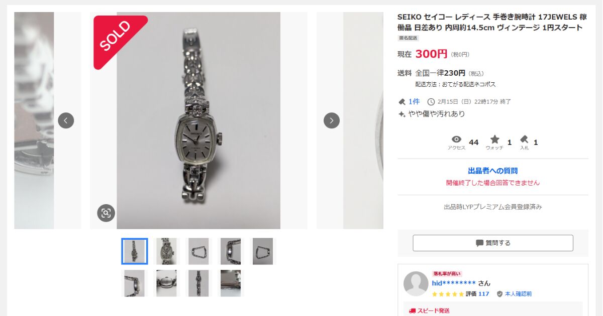 落札価格は300円とかなり控えめでしたが、動いているヴィンテージ時計が売れたというだけでも十分意味があります。